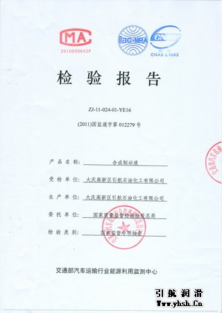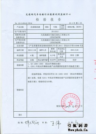 4月28日,引航石化收到國家質(zhì)量監(jiān)督檢驗(yàn)防疫總局檢驗(yàn)報告通知:引航途歡合成制動液產(chǎn)品已通過2011年的國家級抽樣質(zhì)檢,各項(xiàng)指標(biāo)全部符合GB 12981-2003《機(jī)動車輛制動液》標(biāo)準(zhǔn),檢驗(yàn)結(jié)論為合格。
