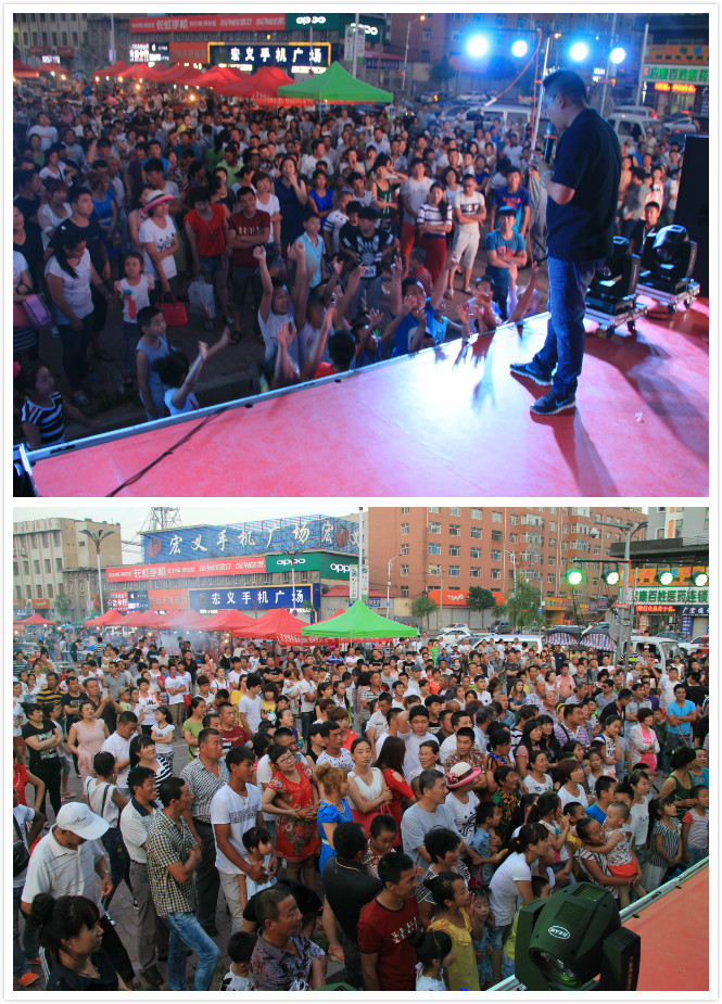 言歸正傳,節(jié)目開始了,唱歌,跳舞,魔術,二人轉(zhuǎn),一個賽一個的精彩,舞臺前絡繹不絕的人群,時而驚嘆魔術的神奇,時而被二人轉(zhuǎn)的幽默逗的哄堂大笑,李小龍的功夫之后,邁克爾杰克遜又來了,應接不暇啊!。