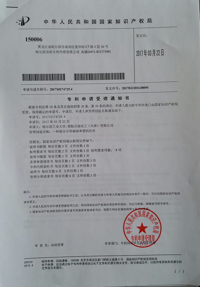 我國(guó)專利分為外觀設(shè)計(jì)專利、實(shí)用新型專利、發(fā)明專利三種,發(fā)明專利是最重要、也是要求最為嚴(yán)格的專利類型,此次領(lǐng)航-哈工大聯(lián)合申請(qǐng)的專利,為發(fā)明專利。專利申請(qǐng)?zhí)枮?01710174729.4,申請(qǐng)人為哈爾濱工業(yè)大學(xué)、領(lǐng)航石油化工(天津)有限公司,發(fā)明人為哈工大劉宇艷、孫星卉,以及領(lǐng)航潤(rùn)滑油周忠誠(chéng)、韓白。