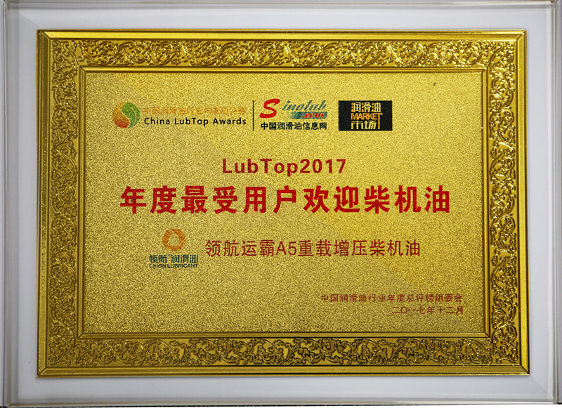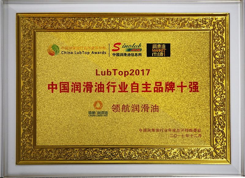 領(lǐng)航獲得LubTop2017中國潤滑油行業(yè)年度總評榜“中國潤滑油行業(yè)自主品牌十強(qiáng)”、“年度最受用戶歡迎柴機(jī)油”兩項(xiàng)大獎(jiǎng)