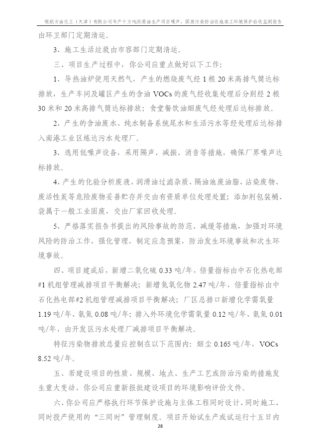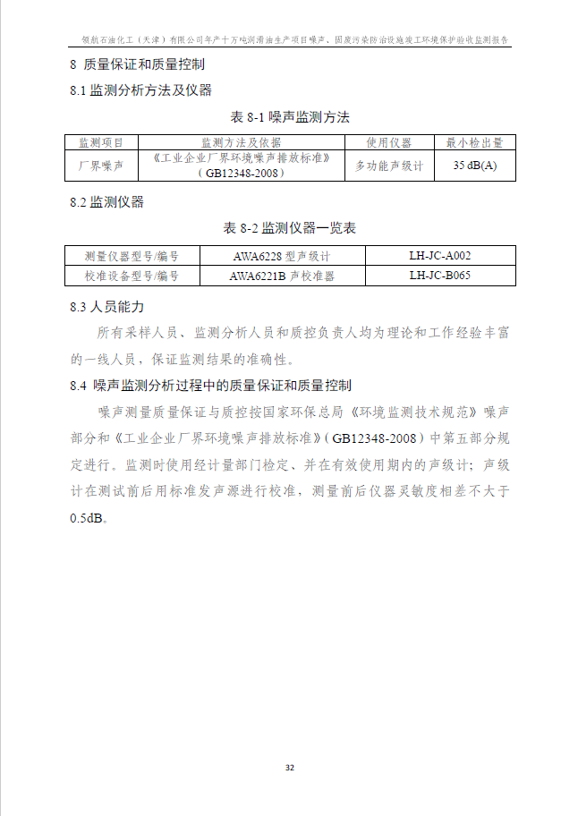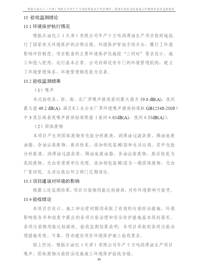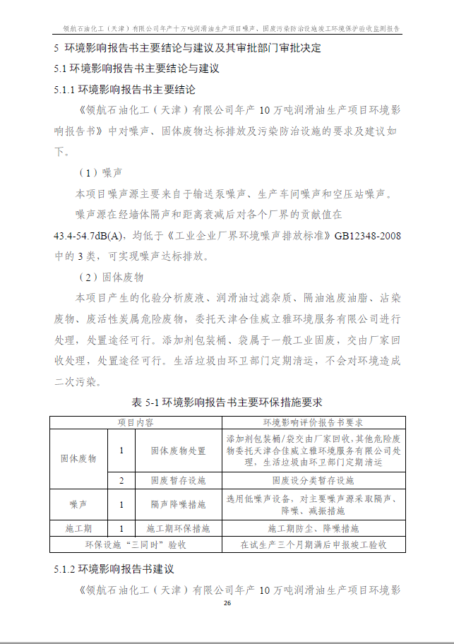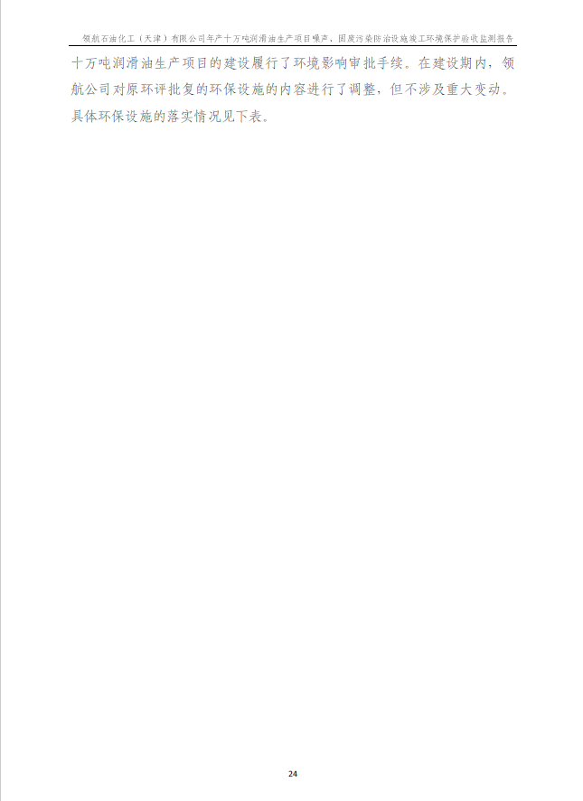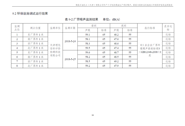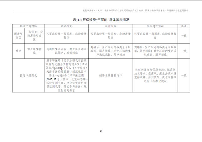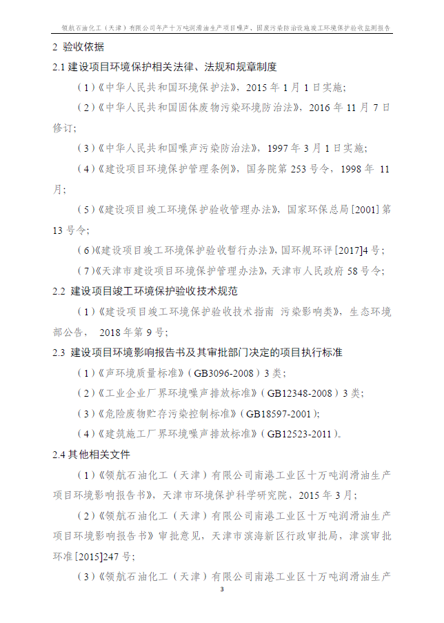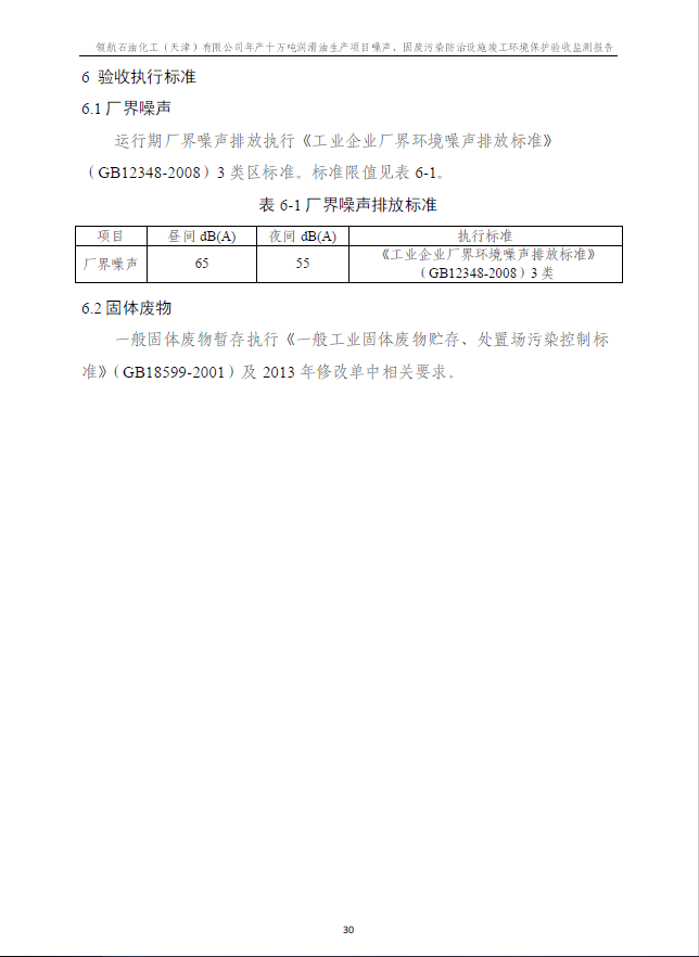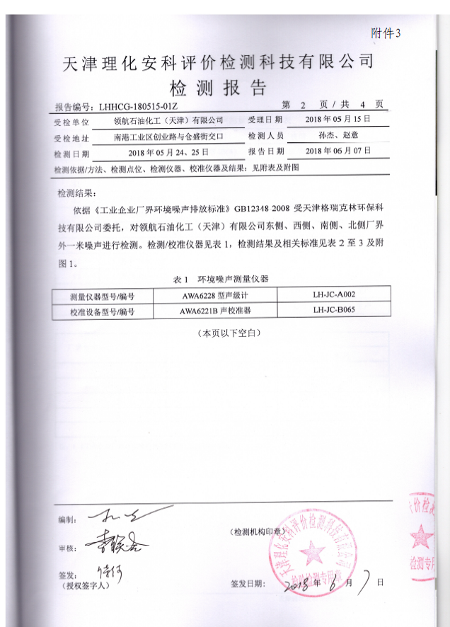領航石油化工(天津)有限公司環(huán)保驗收監(jiān)測報告---噪聲、固廢