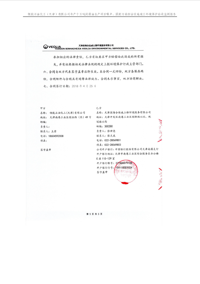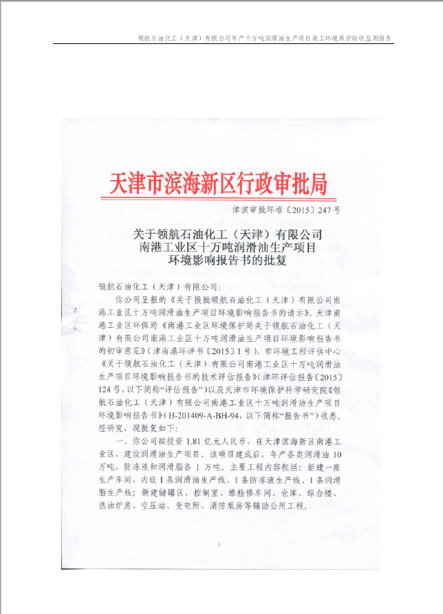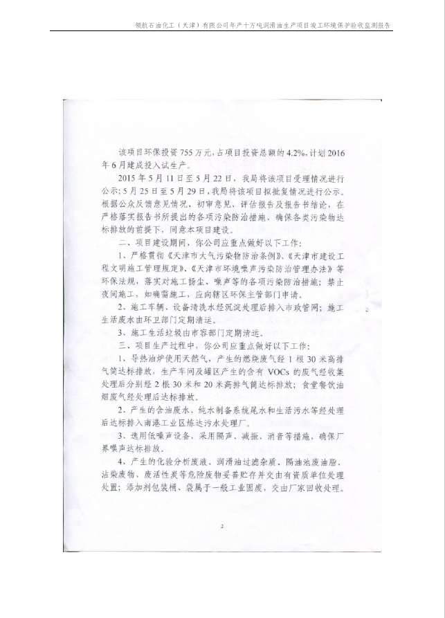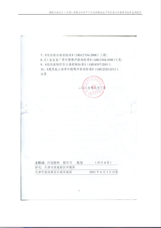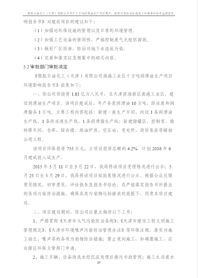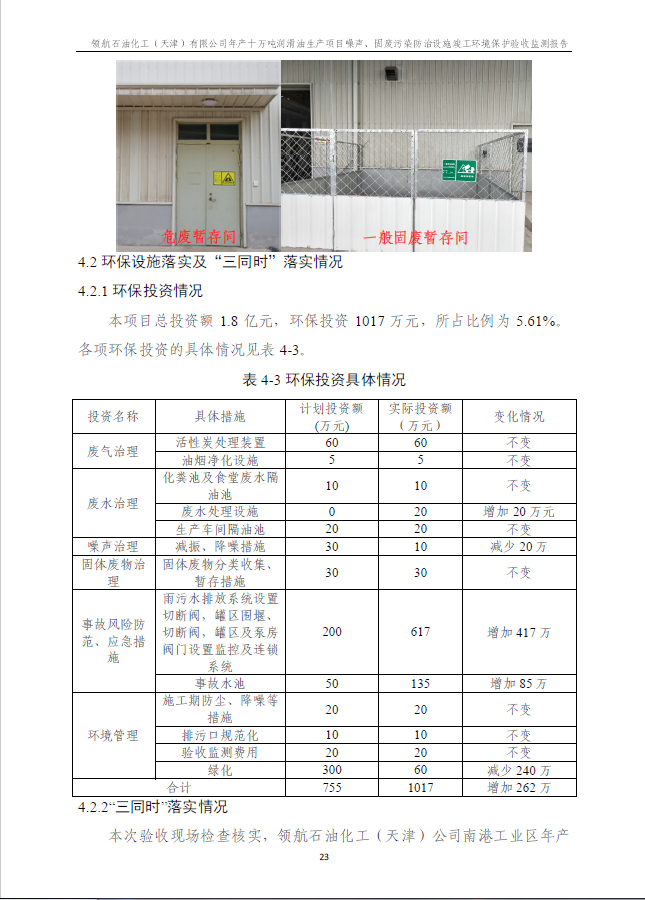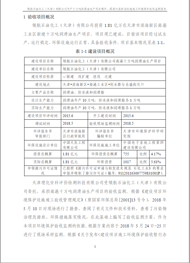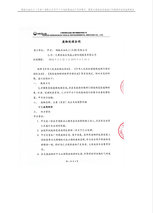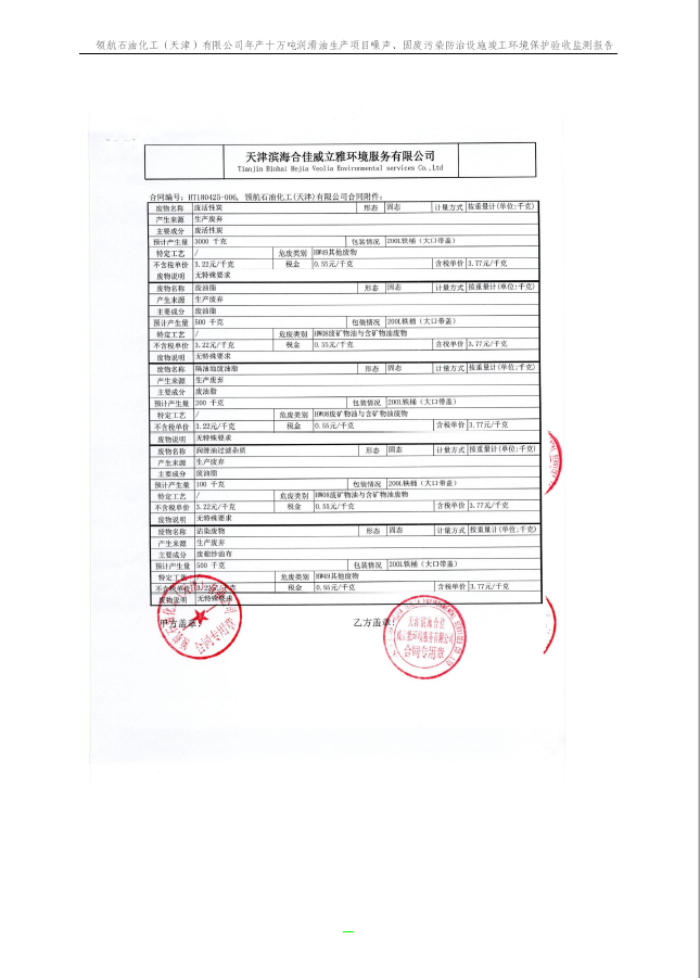領航石油化工(天津)有限公司環(huán)保驗收監(jiān)測報告---噪聲、固廢