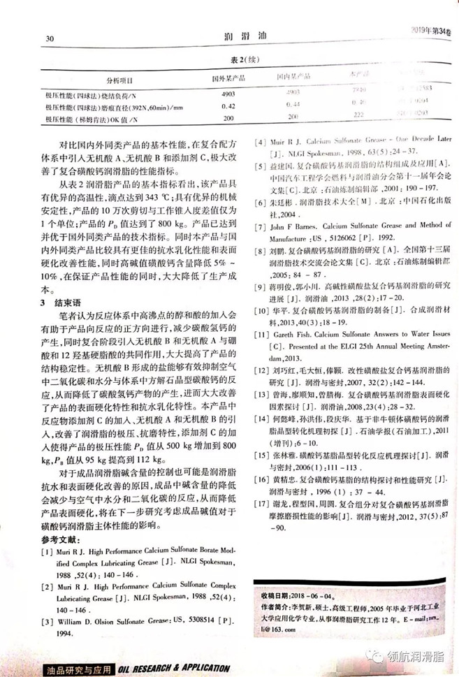 要說(shuō)這“新貴”為何剛出道就這么炙手可熱?因?yàn)樗錾砀哔F,打造她的團(tuán)隊(duì),都不是簡(jiǎn)單人物,這不,領(lǐng)航潤(rùn)滑脂團(tuán)隊(duì)李賀新和郭然在《潤(rùn)滑油》發(fā)表題為《復(fù)合磺酸鈣潤(rùn)滑脂的性能改進(jìn)》,為領(lǐng)航潤(rùn)滑脂在性能方面的提升,奠定堅(jiān)實(shí)的基礎(chǔ)。