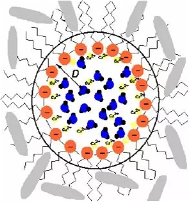 高堿值磺酸鈣是由稀釋油、磺酸鈣、碳酸鈣(無(wú)定型)組成,碳酸鈣被磺酸鈣包裹在里面形成穩(wěn)定的膠束,外面分布稀釋油,整個(gè)體系呈穩(wěn)定透明的液體狀態(tài)。