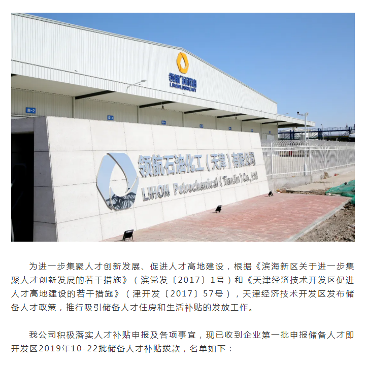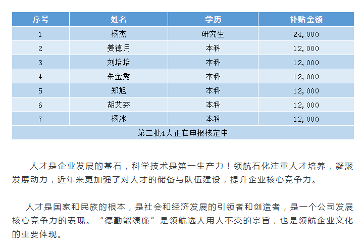 領(lǐng)航石化儲備人才補(bǔ)貼第一批發(fā)放名單公示