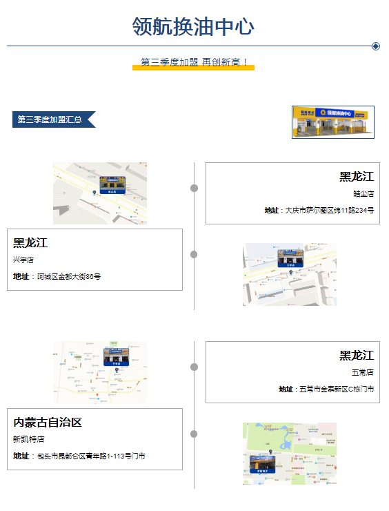 領(lǐng)航換油中心第三季度新增加盟門店55家!