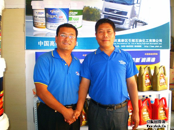 太原引航汽機(jī)油合作伙伴孫經(jīng)理(中)與引航銷售經(jīng)理張國慶(左一)