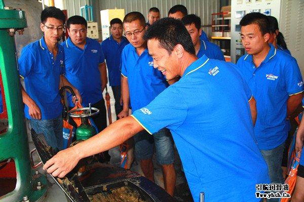 伙伴們在引航潤滑脂生產(chǎn)車間