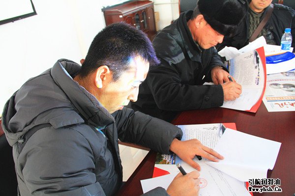 上午9時,在引航石化技術(shù)服務(wù)部工程師孫巍宇陪同、講解下,遜克農(nóng)機(jī)合作社合作伙伴首先對引航品牌展廳、引航技術(shù)中心、引航倉儲中心、引航生產(chǎn)車間等進(jìn)行了細(xì)致參觀,隨后來到引航會議室,雙方簽約儀式正式開始。儀式上,引航東北地區(qū)區(qū)域經(jīng)理閆樹國向大家闡述了引航品牌優(yōu)勢與企業(yè)大事記;引航石化技術(shù)服務(wù)部總工程師聶嶺就“大型農(nóng)用機(jī)械使用潤滑油的特點(diǎn)與注意事項(xiàng)”、“引航清潔低硫潤滑油的優(yōu)勢”等問題向大家進(jìn)行了詳細(xì)講解。之后,遜克農(nóng)機(jī)合作社代表孫憲文經(jīng)理、劉學(xué)廣經(jīng)理、姜中華經(jīng)理依次發(fā)言,細(xì)致地介紹了遜克農(nóng)機(jī)合作社的現(xiàn)狀、農(nóng)機(jī)的數(shù)量與車況,表達(dá)了對引航品牌的信賴,他們說,“大型農(nóng)機(jī)價格不菲,保養(yǎng)尤其重要,我們的農(nóng)機(jī)就是要用引航這樣的好油!”。簽約儀式于12時結(jié)束,儀式現(xiàn)場氣氛十分熱烈。