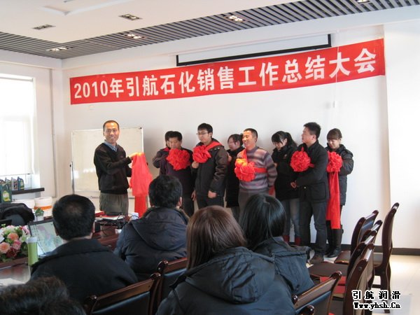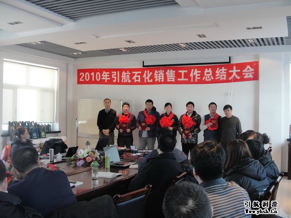 引航石化2010年度銷售總結(jié)暨表彰大會(huì)于2011年1月2日在公司總部隆重召開,會(huì)議由銷售總監(jiān)張浩主持,總經(jīng)理周忠誠(chéng)、副總經(jīng)理張國(guó)軍與全國(guó)各區(qū)域營(yíng)銷將士齊聚一堂,共商公司發(fā)展大計(jì),為2010的收獲表彰喝彩,為2011的啟動(dòng)擂響了戰(zhàn)鼓。