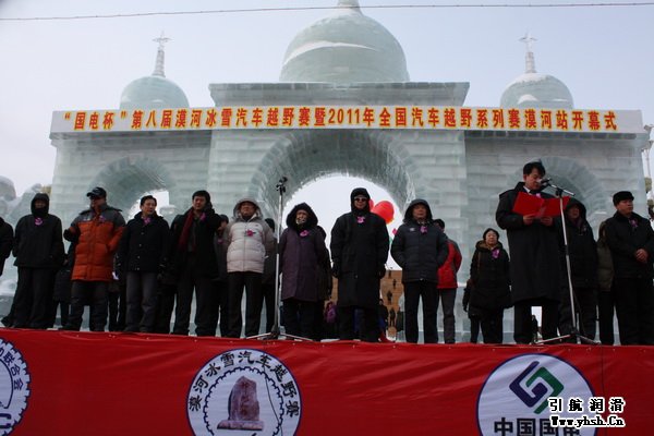 第八屆漠河冰雪汽車越野賽暨2011年全國汽車越野賽于2011年2月24日在漠河拉開帷幕,上午10點30分,漠河的北極星廣場禮炮齊鳴,彩旗飄揚,引來上萬熱情觀眾冒嚴寒觀看開幕式盛況。在富有東北特色的大秧歌和颯爽英姿的女子軍樂團的精彩演出后,中國體育總局汽車摩托車運動管理中心領導進行了賽前重要講話,并宣布第八屆漠河冰雪汽車越野賽正式開賽。開幕式結束后各車隊列隊做發(fā)車儀式并巡游至北極村,下午14時在北極村的黑龍江冰雪江面上奉獻了一場精彩的短道賽(排位賽)。