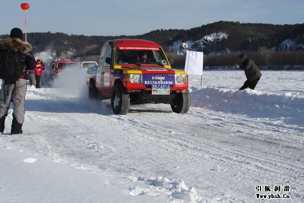 第八屆漠河冰雪汽車越野賽2月25日上午7點(diǎn)55分正式開(kāi)賽,在24日排位賽上位列第二的黑龍江引航潤(rùn)滑油賽車選手楊濤/王亮在7點(diǎn)57分準(zhǔn)時(shí)發(fā)車,比賽由北極村至興安鎮(zhèn)古城島雅克薩,下午13點(diǎn)從興安鎮(zhèn)重組后返回北極村,全路段為冰雪賽道。
