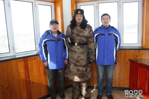 在黑龍江邊,哨所的瞭望塔及廣場(chǎng)上鮮紅的五星紅旗格外醒目,邊防官兵24小時(shí)輪班站崗執(zhí)勤,這些邊防官兵常年駐守在風(fēng)雪邊疆,保衛(wèi)著祖國(guó)的安寧,獻(xiàn)身邊防,是難能可貴的赤子之心。皓皓邊關(guān),他們與白雪為伴;茫茫林海,他們與孤寂相依?吹轿覀兊牡絹恚B長(zhǎng)已經(jīng)早早地出來迎接,我們代表引航石化全體員工向駐扎在邊防哨所的戰(zhàn)士們致以崇高的敬意,同時(shí)向哨所官兵贈(zèng)送了慰問品,這也體現(xiàn)出引航人與人民子弟兵的深情厚意。邊防戰(zhàn)士們臉上憨厚的笑容和真誠(chéng)的熱情,讓我們雖在零下三十度的嚴(yán)寒中,同樣感受到了濃濃的暖意。參觀哨所期間巧遇中國(guó)人民解放軍報(bào)的記者,記者對(duì)引航石化企業(yè)愛軍擁軍的行為高度贊賞,并合影留念。