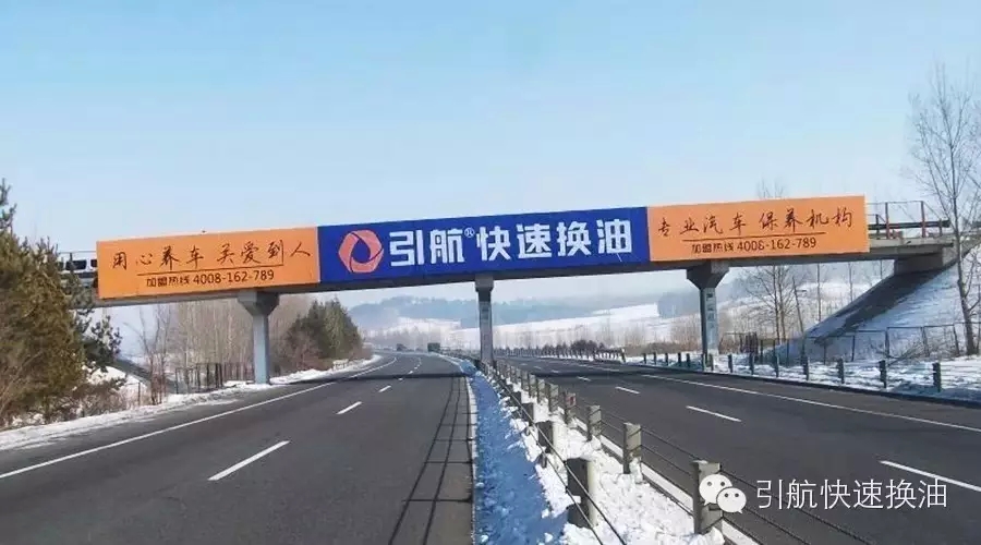 引航快速換油戶外高速路的高空路牌十分醒目。高空路牌的放置,一方面使更多的用戶和加盟商了解并選擇引航快速換油。另一方面,也在提醒著廣大車主關(guān)愛汽車健康。